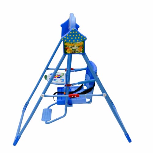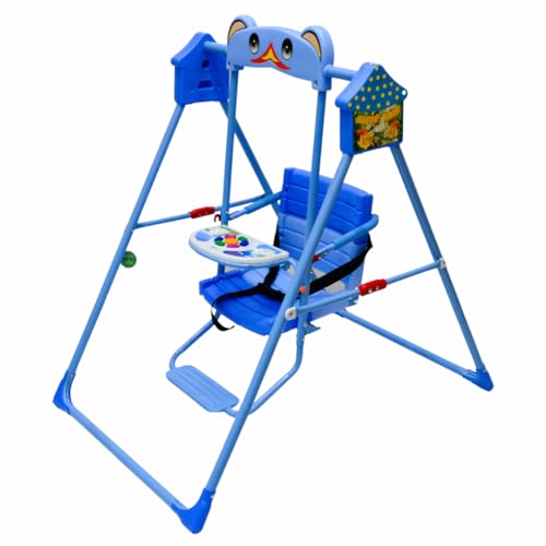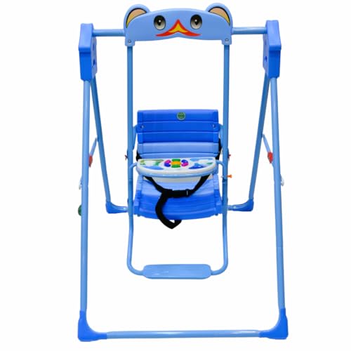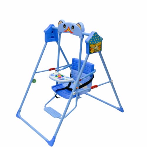 SMR Kids - أرجوحة أطفال مع موسيقى وحزام تثبيت ثلاثي، أرجوحات أطفال من SMR - مقاس 1.02 م × 70 سم × 1.05 م، أزرق