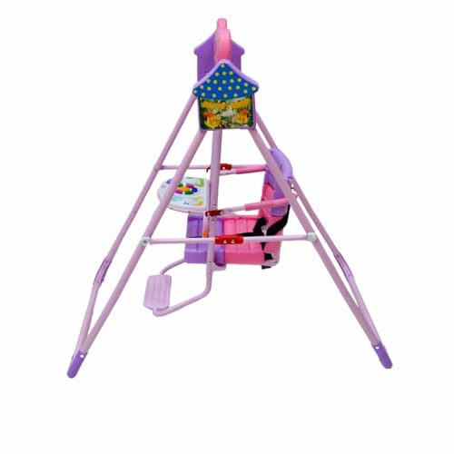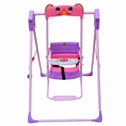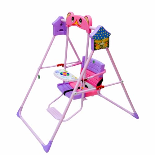 SMR Kids - أرجوحة أطفال مع موسيقى وحزام تثبيت ثلاثي، أرجوحات أطفال من اس ام ار كيدز- مقاس 1.02 م × 70 سم × 1.05 م، وردي