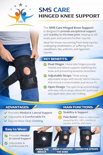 Generic - SMS Care دعامة ركبة مفصلية، دعم أقصى للركبة مع مثبتات جانبية، قابلة للتعديل، للرجال والنساء، لإصابات الغضروف الهلالي والرباط الصليبي (XL)