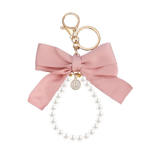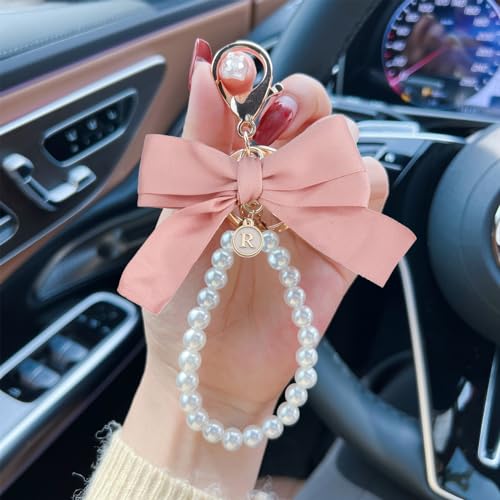 SMUOBT - اس ام يو او بي تي سلسلة مفاتيح على شكل فيونكة للنساء، سلسلة مفاتيح لطيفة على شكل قوس لؤلؤي، سلاسل مفاتيح لمفاتيح السيارة، اكسسوارات سلسلة مفاتيح على شكل فيونكة بلون بينك