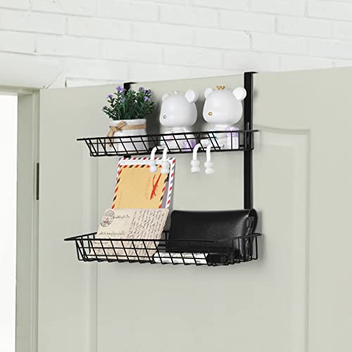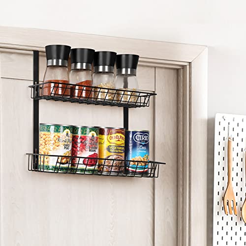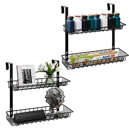 smusei - سلة تنظيم توضع على باب الخزانة من طبقتين سموسي مكونة أسلاك معدنية متعددة الأغراض لتنظيم علب التوابل والمطبخ والحمام وغرفة النوم المعيشة - لون اسود - قطعتين
