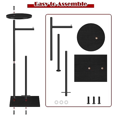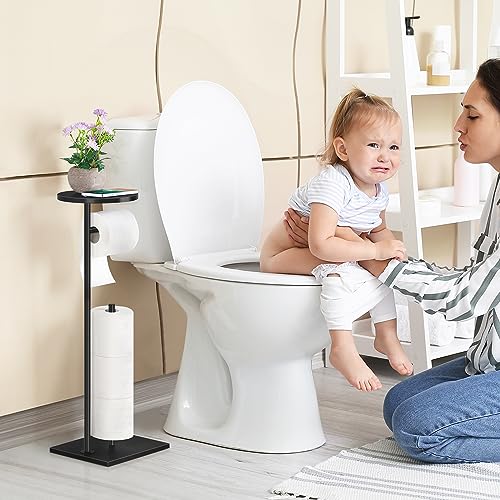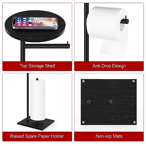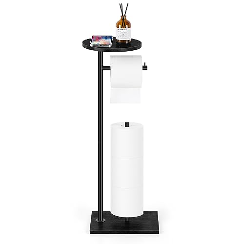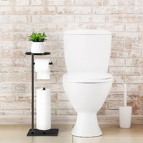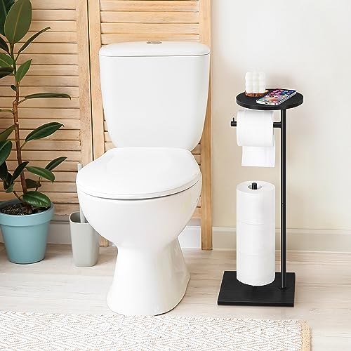smusei - حامل ورق تواليت قائم بذاته، حامل ورق تواليت اسود للحمام مع رف احتياطي، موزع ورق تواليت قائم بذاته لتخزين ورق التواليت من سموسي