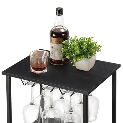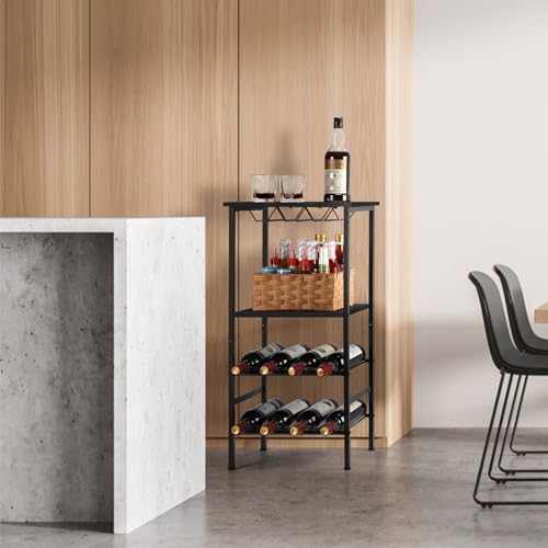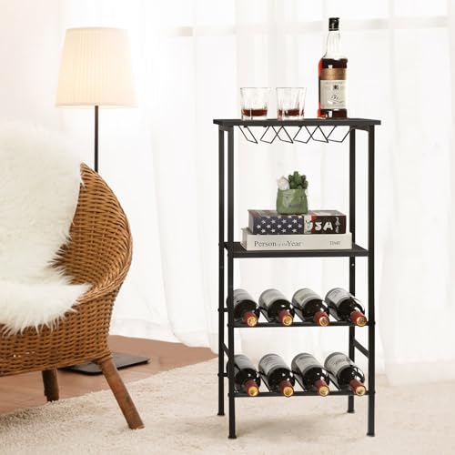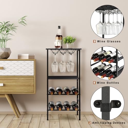 smusei - سموسي رف نبيذ قائم، رف زجاجات مع سطح طاولة وحامل اكواب نبيذ، خزانة مشروبات بـ4 مستويات، حامل نبيذ، حامل معدني لـ 8 زجاجات من النبيذ، منظم تخزين النبيذ للمطبخ، بار قبو النبيذ، اسود