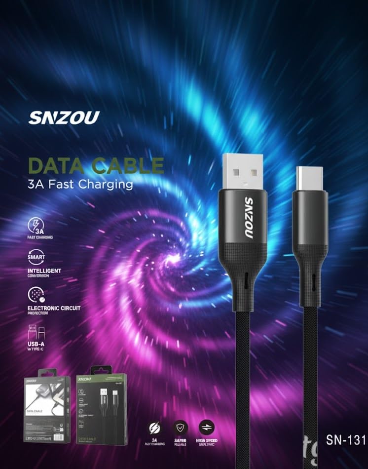 Generic - كابل شحن سريع USB إلى Type-C بقدرة 3A، سلك بيانات مضفر مع فصل تلقائي للطاقة، أسود sn-131