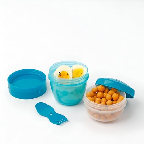 Generic - مجموعة أكواب للوجبات الخفيفة - حاوية عملية مزدوجة المقصورة للزبادي والفواكه سعة 500 مل مع غطاء إضافي للتخزين الطازج، مثالية للوجبات الخفيفة أو الصلصات أو الإفطار أثناء التنقل