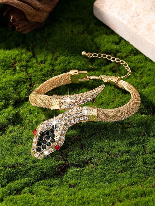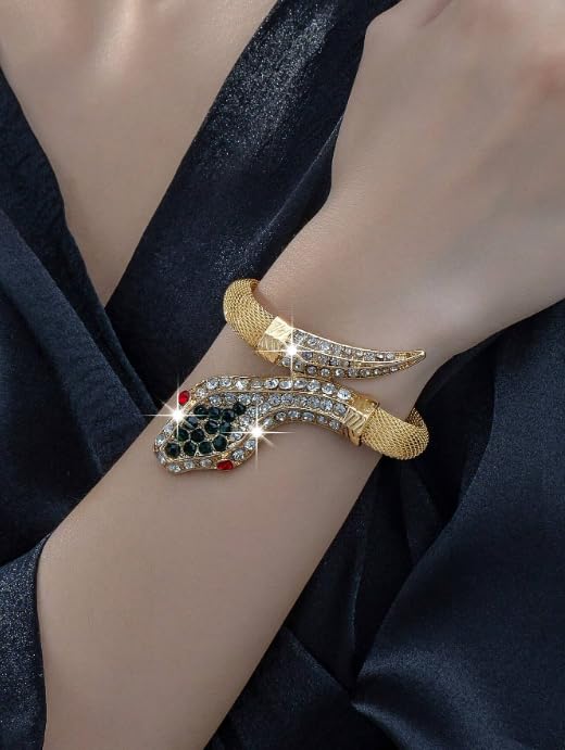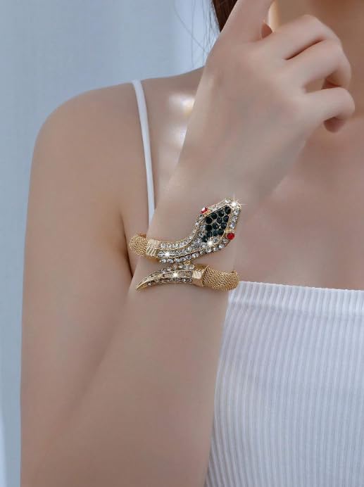Generic - سوار حريمي بتصميم ثعبان مرصع بفصوص لامعة – إكسسوار شيك للمناسبات والخروجات