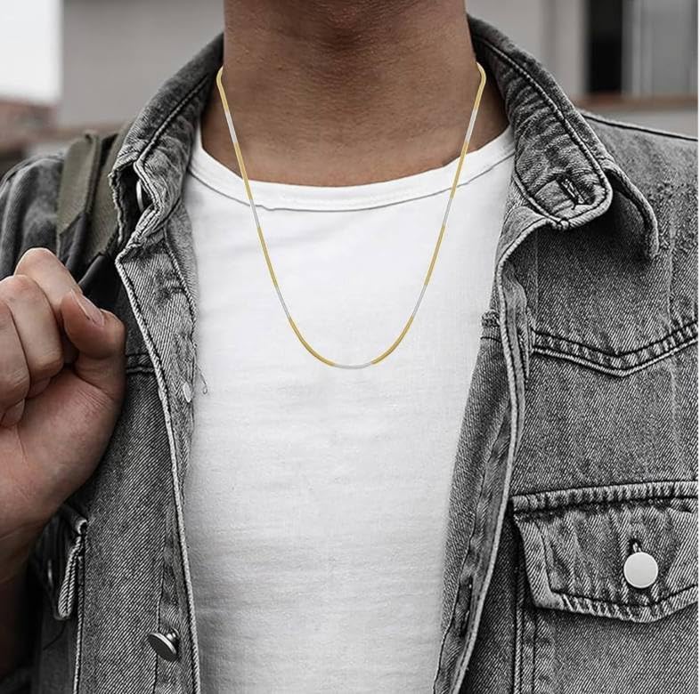 Generic - قلادة سلسلة على شكل ثعبان للنساء والرجال مزيج من الفضة والذهبي من الستيل غير اللامع للنساء والرجال، مجوهرات بحلقات هدية