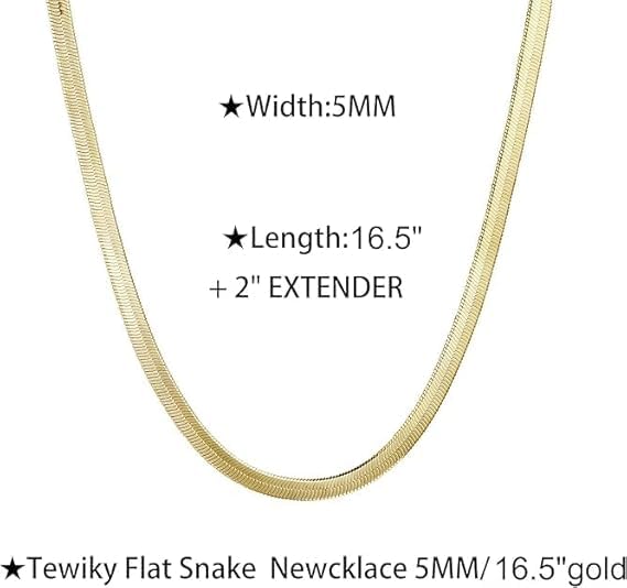 Generic - قلادة سلسلة ثعبان، مطلية بالذهب، نمط متعرج