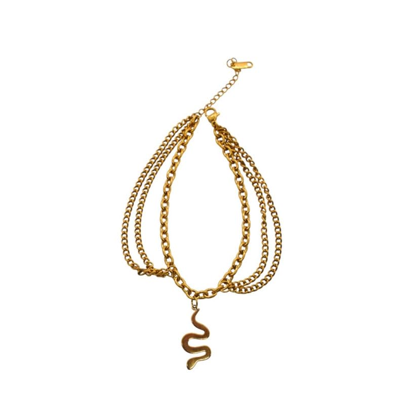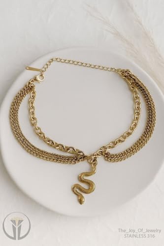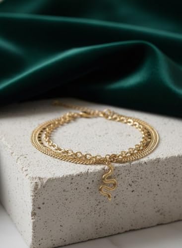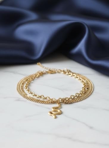 Generic - خلخال متعدد السلاسل بدلاية شكل ثعبان من الفولاذ المقاوم للصدأ للنساء، لون ذهبي