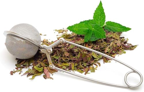 ZELLYA - مصفاة شاي كروية بكباس مع مقبض، مصفاة شاي كروية شبكية من الفولاذ المقاوم للصدأ لأوراق الشاي السائبة، مصفاة شاي كروية من الفولاذ المقاوم للصدأ، فلتر شاي، ملقط شاي، أداة نقع شاي بمقبض، 3 قطع