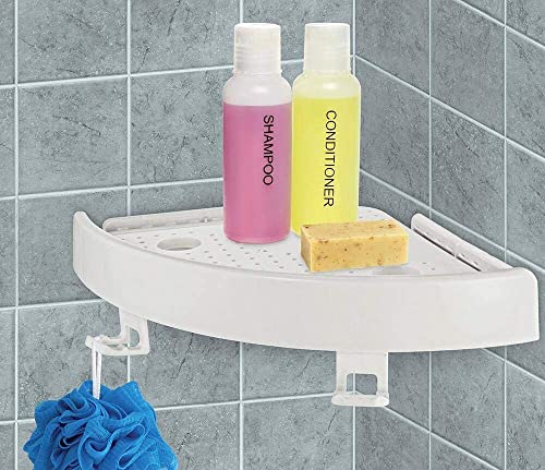 Spaceshoop - رف تخزين سناب اب مثلث الشكل للحمام، يُثبت على الحائط، منظم للحمام (أبيض)