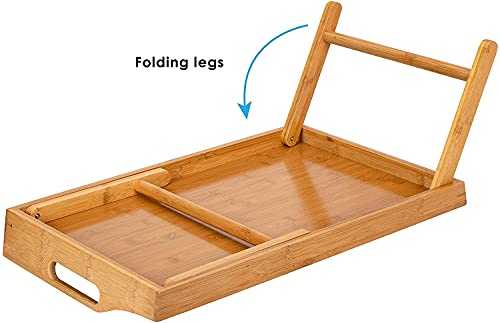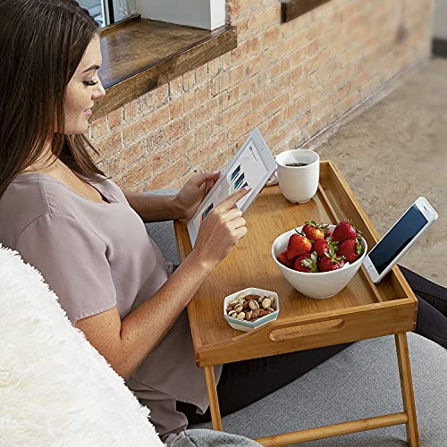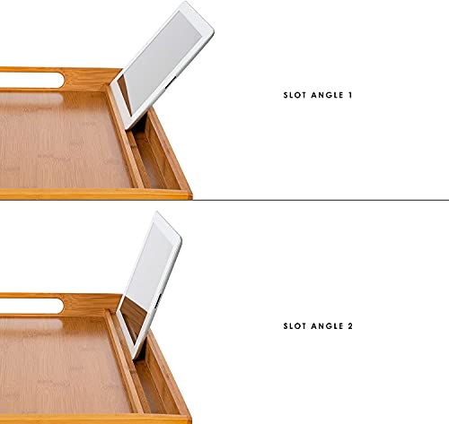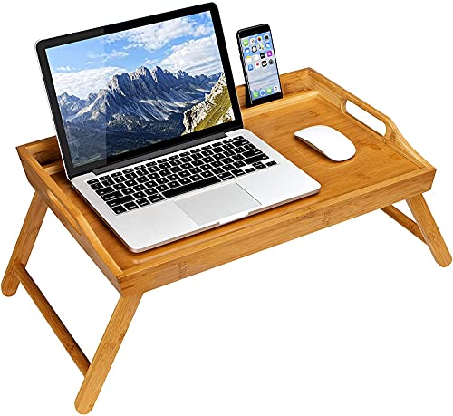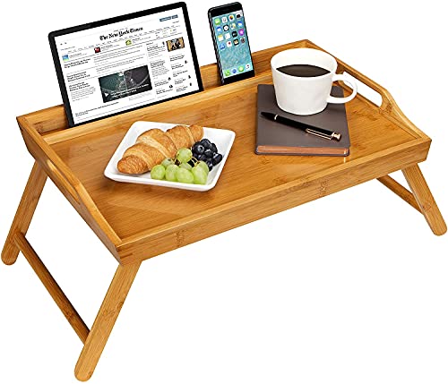 Snazzy - صينية طاولة أفطار محمولة قابلة للطي من خشب البامبو وطاولة لابتوب مع حامل للجوال والتابلت وتناسب أجهزة اللابتوب حتى 17.3 بوصة من سنازي