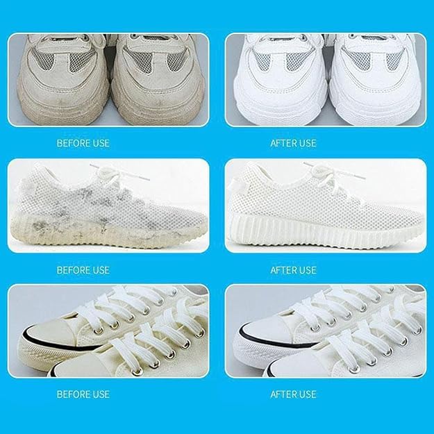 - إزالة قوية للأوساخ؛ سواء كانت بقع طينية صعبة أو تراكم يومي للأوساخ، فإن تركيبة إزالة البقع القوية الموجودة في منظف الأحذية الرياضية البيضاء لدينا يمكنها أن تخترق عميقًا في الألياف، مما يوفر إزالة فعالة وشاملة للأوساخ، مما يجعل حذائك يبدو وكأنه جديد تمامًا.
