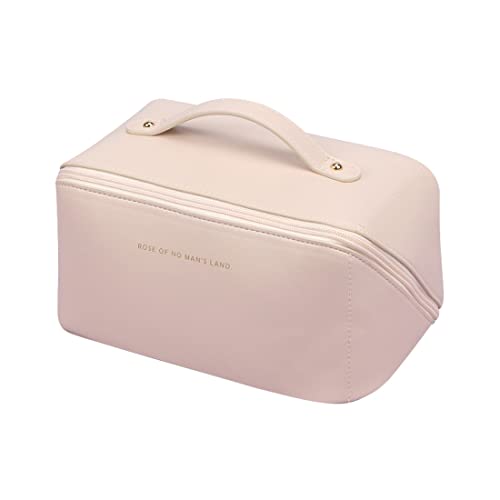 Snewvie - شنطة مكياج نسائية بسعة كبيرة محمولة مقاومة للماء منظمة لمستحضرات التجميل من جلد البولي يوريثين مع داخلية للسفر هدية الكريسماس #1 ابيض سنيوفي