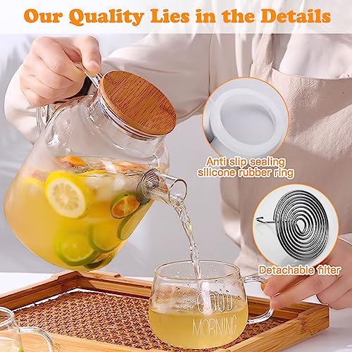 - 【إبريق شاي زجاجي أنيق] إبريق الشاي الزجاجي الخاص بنا مصنوع من زجاج شفاف للغاية بتصميم أنيق وبسيط. يتناغم بشكل مثالي مع ديكور المنزل العصري. شاي الأعشاب والزهور السائبة، وشاي أوراق التوت الأحمر، وشاي الفواكه والليمون المثلج المحضر منزليًا، كلها تبدو أكثر جمالاً في أباريقنا الزجاجية، مما يمنحك تجربة شرب شاي أكثر متعة.