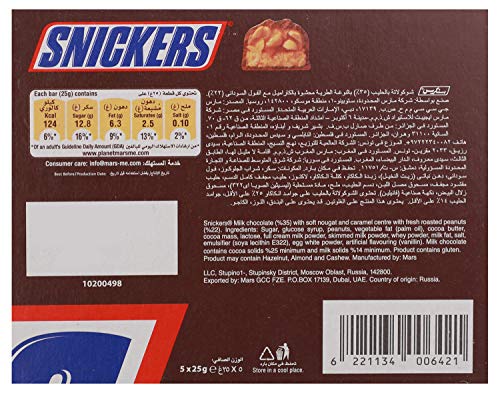 Snickers - شوكولاتة تويكس، مجموعة من 5 قطع – 25 جم