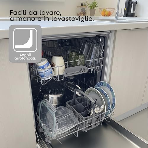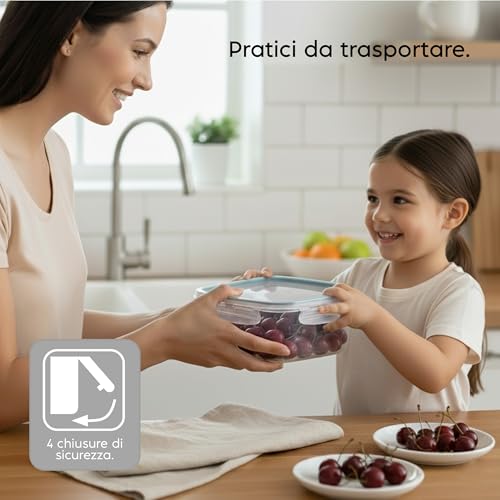 - بالإضافة إلى الحاويات: إنها مجهزة بإغلاق محكم ملون مع 4 أقفال أمان على الغطاء للسماح لك بتخزين الطعام بشكل مثالي والتعامل الآمن مع الطعام. الغطاء مسطح وقابل للتكديس بشكل مريح في أي مكان