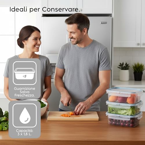 - حاوية مستطيلة: مجموعة جميلة من 3 حاويات طعام سعة 1800 مل. أبعاد المنتج 23.5 × 18.5 × 13 سم مثالية للحفاظ على رائحة الطعام والعطور.