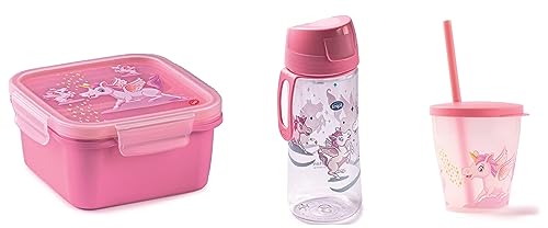 Snips - طقم مكون من 3 قطع من سنيبس كوب بشفاطة وغطاء + زجاجة معزولة 0.50 لتر+ علبة حفظ الغذاء لانش بوكس بطباعة يونيكورن، خالي من مادة بيسفينول ا، صنع في ايطاليا