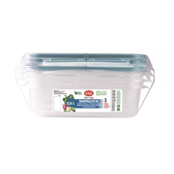 Generic - حاويات تخزين الطعام من سنيبسلوك مع اغطية محكمة الغلق، 0.6 لتر، بلاستيك شفاف، مجموعة من 3 قطع