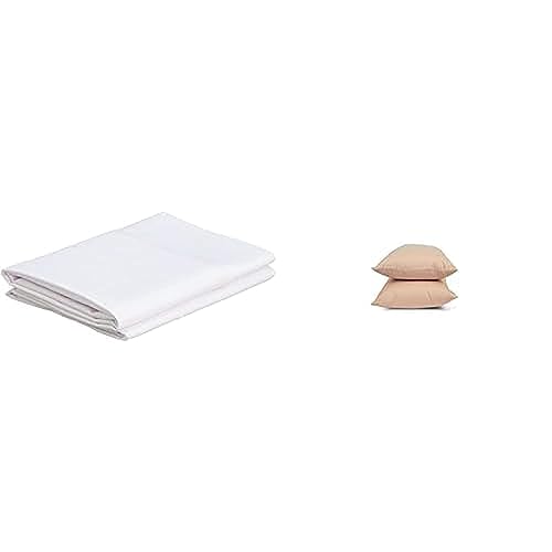 Snooze - طقم اكياس مخدات، قطعتين، 50 × 70 سم، لون ابيض سادة + طقم اكياس مخدات قطن هوم اوف لينين، مقاس 50 × 70 سم، لون بيج