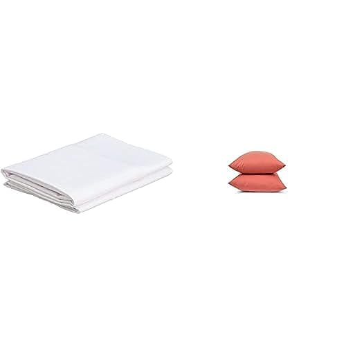 Snooze - مجموعة اكياس مخدات، قطعتين، 50 × 70 سم، ابيض سادة + طقم اكياس مخدات قطن من هوم اوف لينين، بلون بطيخي، مقاس 50 × 70 سم
