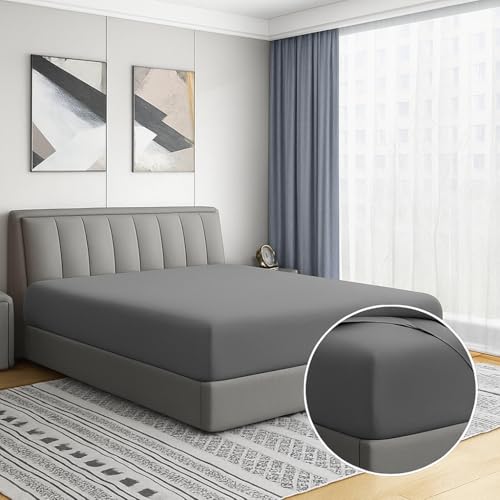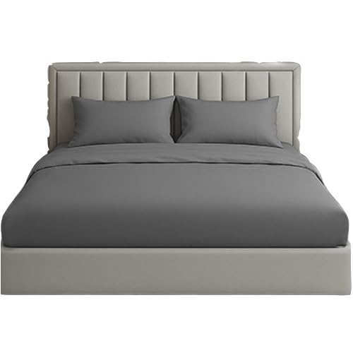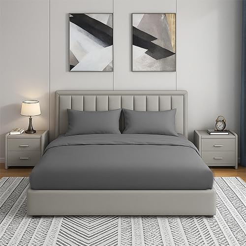 Snooze - سنوز, طقم ملاية سرير بحواف مطاطية 3 قطع، ملاية سرير 160 × 200 سم + 2 كيس وسادة 45 × 65 سم، رمادي