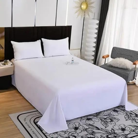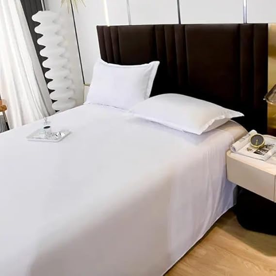 Snooze - طقم ملاءة سرير مسطحة من المايكروفايبر من سنوز، لون أبيض، 2.2×2.4 متر، 3 قطع