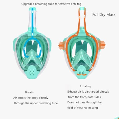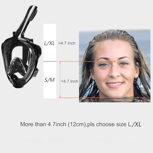 RUXNE - قناع غوص لكامل الوجه للبالغين للتنفس الآمن، قناع قابل للطي مع زاوية رؤية بانورامية 180 درجة وحامل كاميرا، مضاد للتسرب ومضاد للضباب، لارج واكس لارج (L/XL)