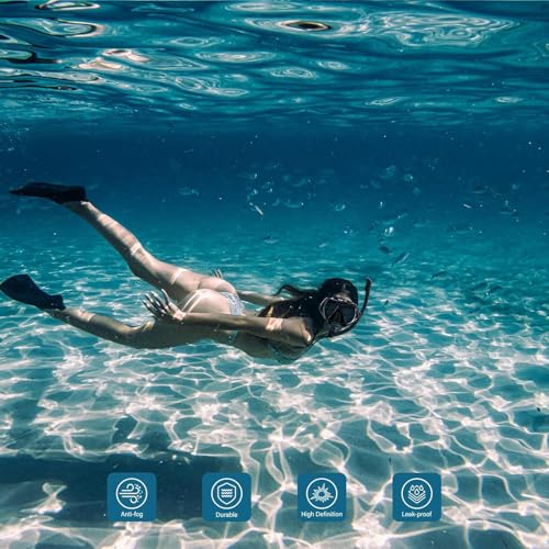 - 【عدسات مضادة للضباب توفر رؤية واضحة】قناع الغوص ومرايا الغوص مجهزة بغشاء مضاد للضباب لتجنب الضباب داخل العدسة عند زفير الأنف. يوفر لك التصميم البانورامي بزاوية 180 درجة رؤية فائقة لمغامرات جميلة تحت الماء. إنه الخيار الأفضل لاستكشاف العالم تحت الماء ببهجة.