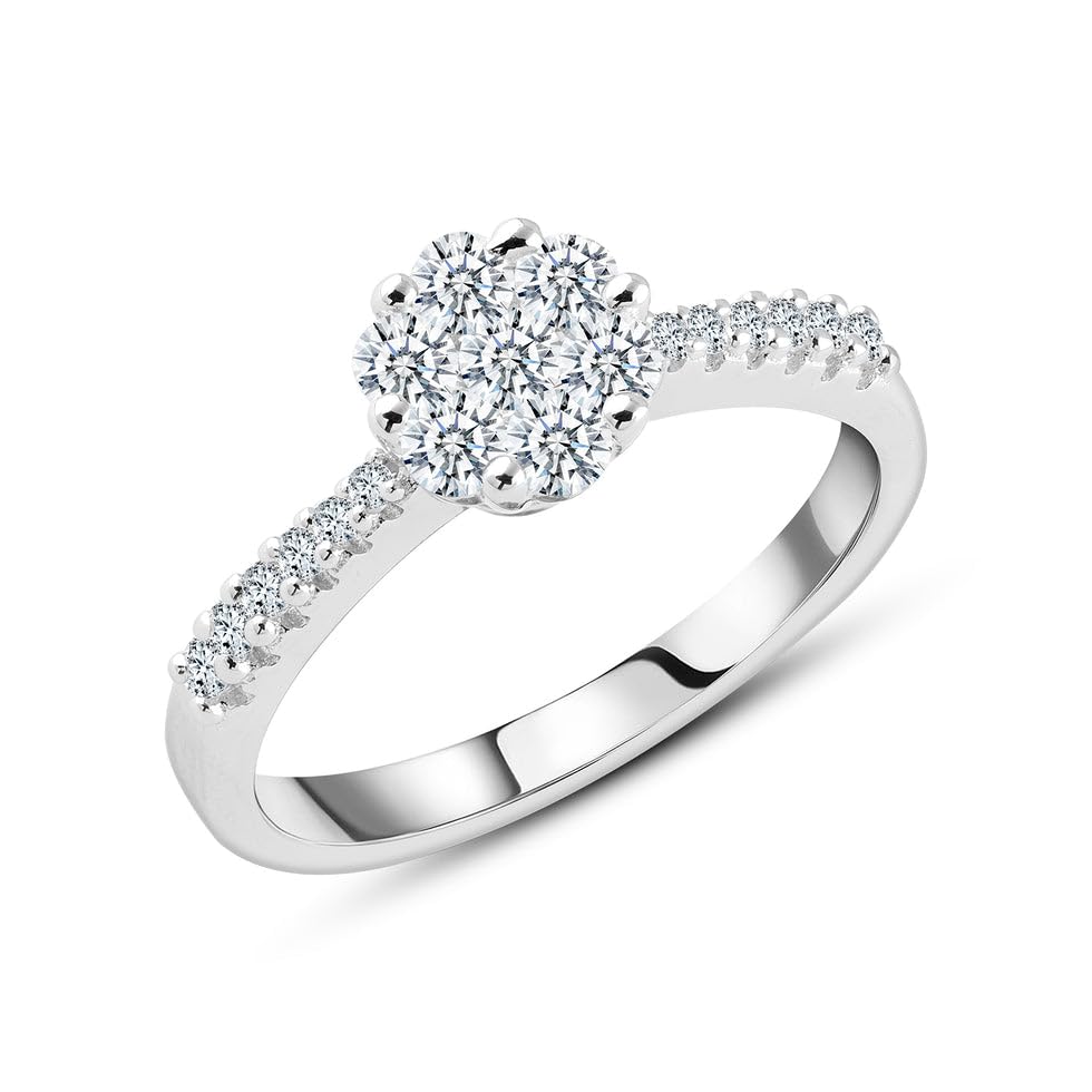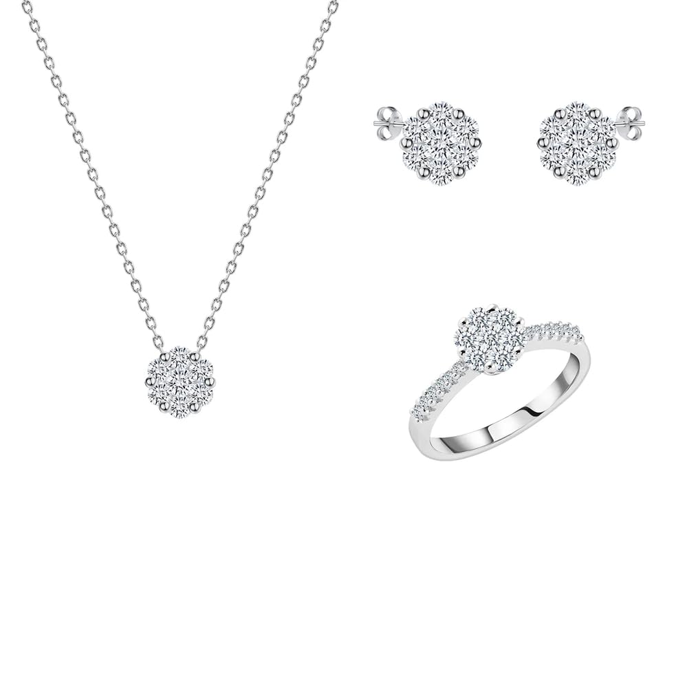 Generic - مجموعة زهور الثلج - خاتم من الفضة الايطالية مع احجار زركون بيضاء مقاس 9