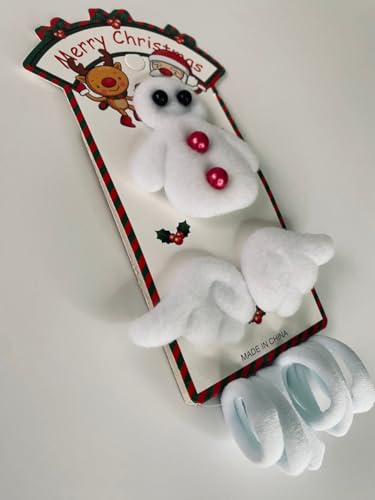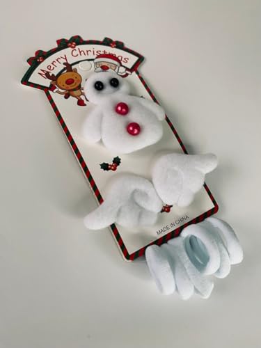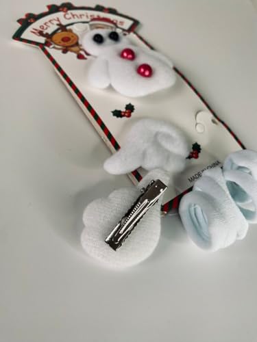 Generic - مشبك شعر للأطفال على شكل رجل الثلج، أبيض، مع تصميم عيد الميلاد، 6 قطع من مشابك وربطات الشعر، مصنوع من البوليستر، مع أزرار حمراء وزخارف احتفالية