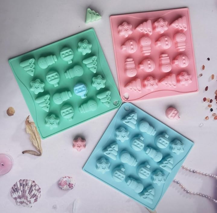 Generic - قالب اعداد الشيكولاتة وحلوي الهلام بشكل رجل الحليد وندفة الثلج ونجمة الكريسماس