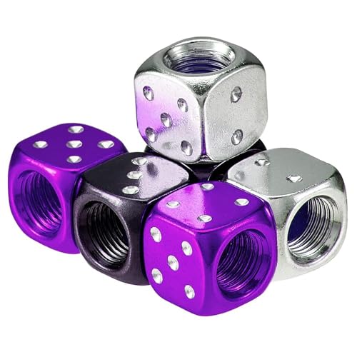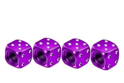SNS Components - أغطية ألومنيوم واقية من الأتربة لصمام الهواء بعجلات السيارات والدراجات والشاحنات والموتوسيكلات بتصميم على شكل حجر النرد، لون أرجواني، عبوة من 4 أغطية