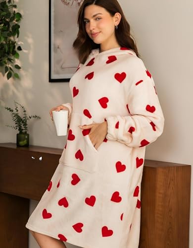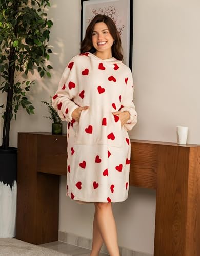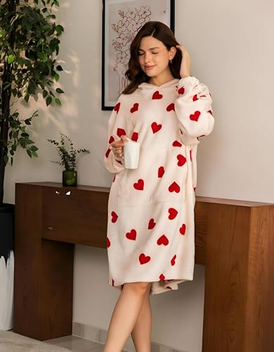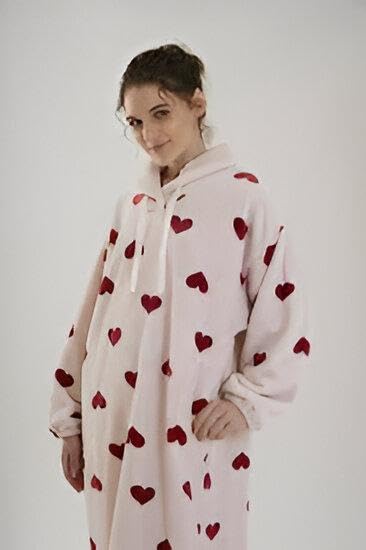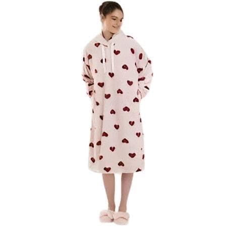 Generic - [سناج تشارم] - روب بغطاء رأس من الصوف المخملي باللون الزهري مع زخرفة قلب، طقم مريح جيد التهوية مع جيوب جانبية للراحة اليومية