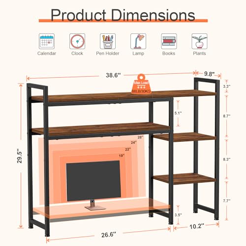 - 【مقاس مثالي】: 38.6 انش طول × 9.8 انش عرض × 29.5 انش ارتفاع، قام مصممونا بحساب أبعاد أرفف سطح المكتب بعناية لضمان ملاءمتها لمختلف أسطح الطاولات مثل الكمبيوتر ومكتب السكن. يمكن أن يناسب الجيب الكبير المفتوح من الخلف الشاشات حتى 28 انش. يمكنك بسهولة وضع شاشة الكمبيوتر واستخدام مساحة التخزين العمودية بفعالية.