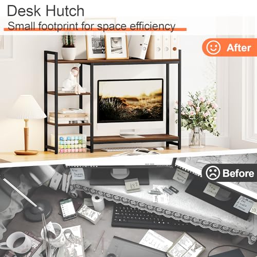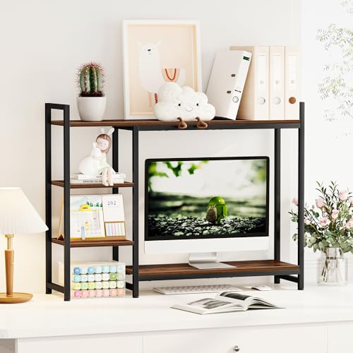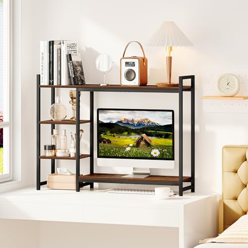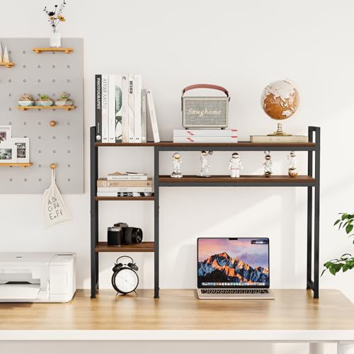 Snughome - سنوغ هوم رف مكتب قابل للتعديل مقاس 38.5 انش لحوامل شاشة الكمبيوتر عرض لسطح المكتب من 4 طبقات تخزين خشبي للمنزل والمكتب والسكن