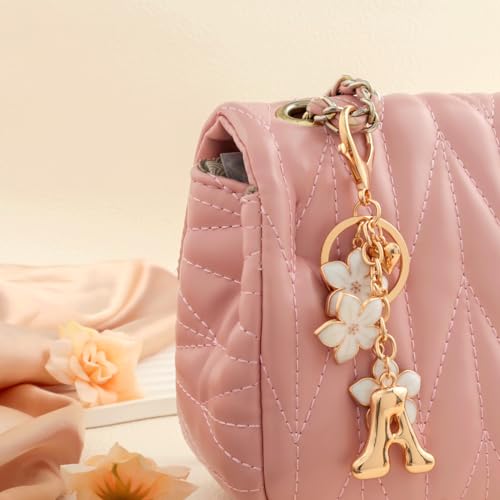 Snycler - سلسلة مفاتيح بتصميم بابل بتصميم زهرة جميلة للحقائب والسيارة وجهاز التحكم عن بعد من سنيكلر - دلايات على شكل حرف A-Z للنساء