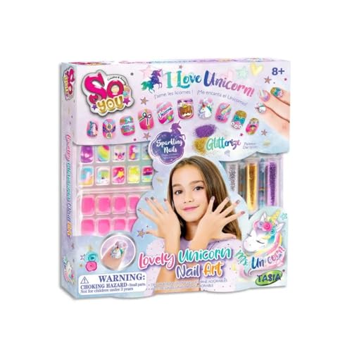 Tasia - مجموعة تزيين أظافر يونيكورن للأطفال من سو يو، أظافر لامعة مع جليتر وملصقات وأظافر تعمل بالضغط، للأعمار من 8 سنوات فما فوق