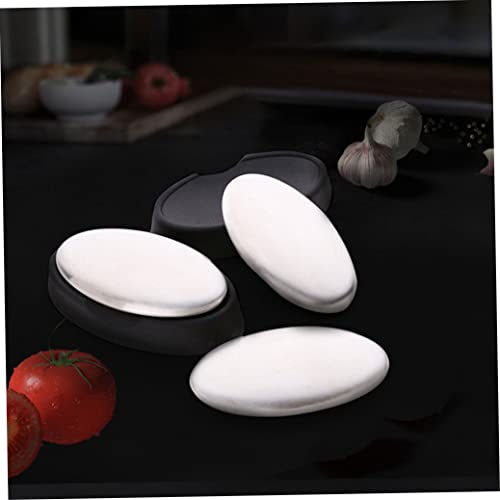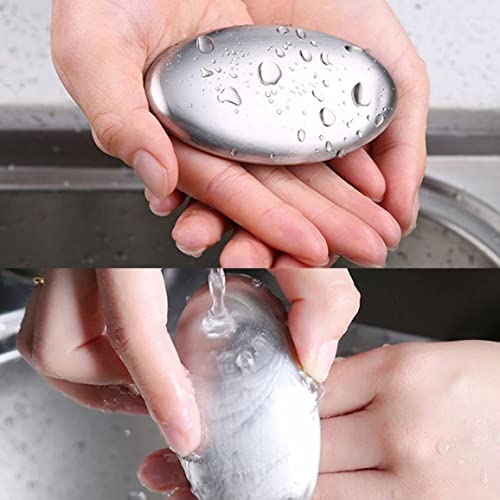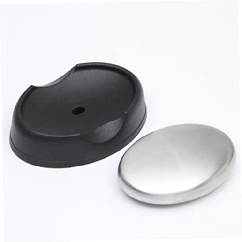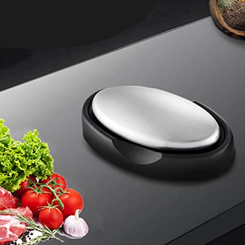 ESiiFuu - لوح صابون لرائحة اليد مع قاعدة، صابون معدني من فولاذ مقاوم للصدأ، مزيل للروائح الكريهة لرائحة السمك والثوم، لوح فاصل بيضاوي