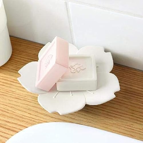 Other - صندوق صابون، طبق بشكل وردة ساكورا لديكور الحمام - لون أبيض