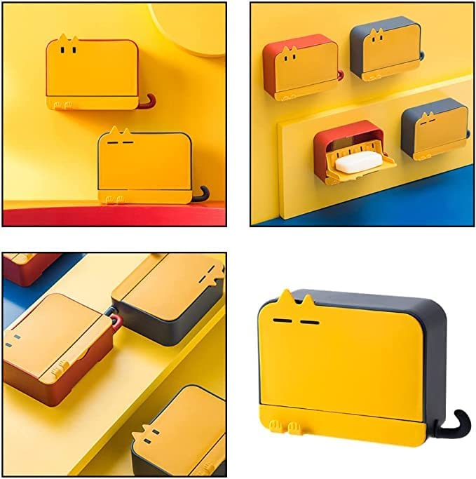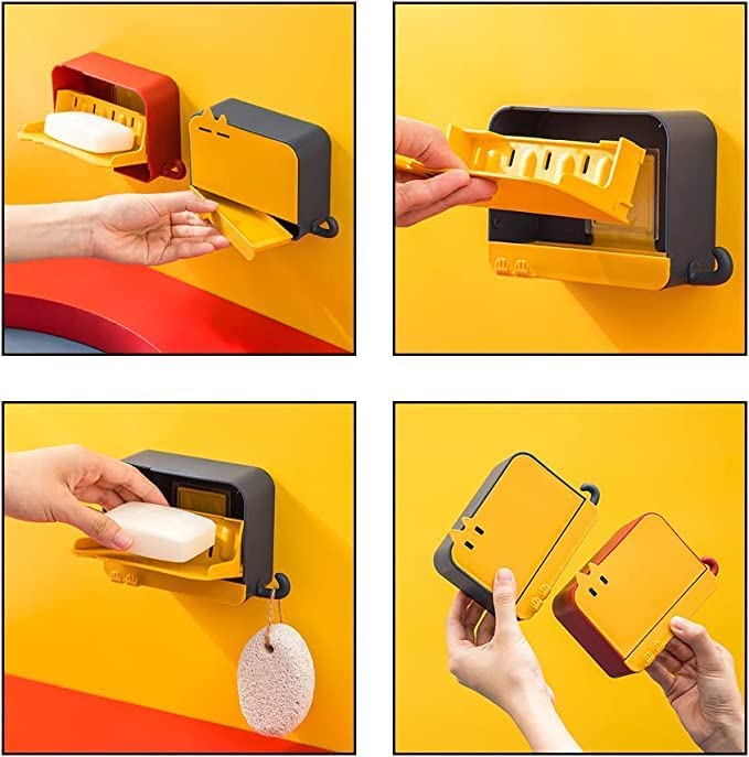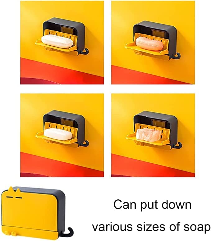 - حامل صابون يثبت على الحائط بدون ثقب مع غطاء وخطاف للحمام والمطبخ