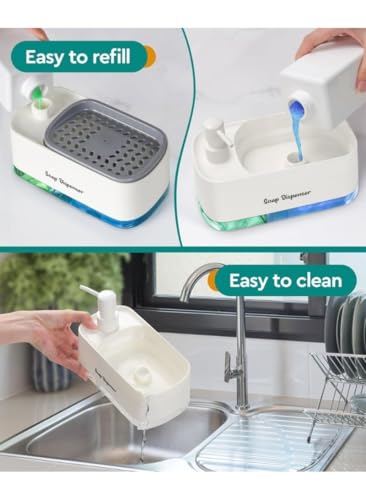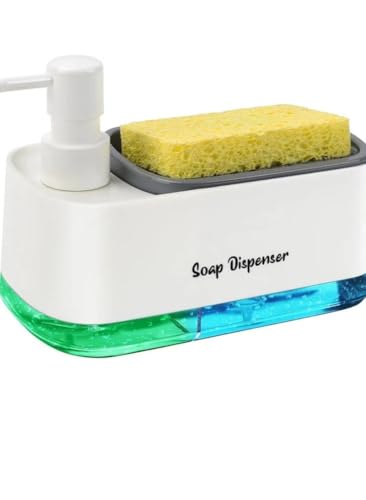 generic - موزع صابون (3 في 1): موزع واسفنجة مع مضخة سحرية لتوزيع الصابون + موزع اضافي لغسل اليدين، حوضان منفصلان، كل منهما بسعة 400 مل + اسفنجة اطباق مجانية