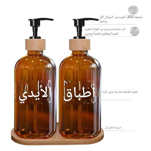 - موزع الصابون للحمام مصنوع من الزجاج، مقترن بصينية خشبية، مقاوم للصدأ، قابل لإعادة التعبئة ومتين.
