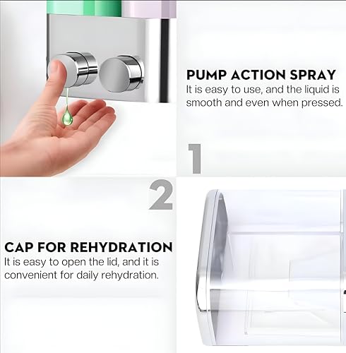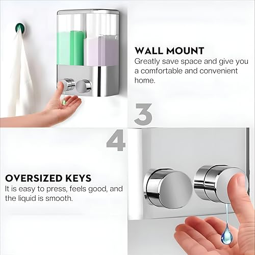 - Engineered for effortless daily use, the dispenser responds to a light press on its wide keys to release the perfect amount of product, ensuring comfort and reducing waste significantly. This user-friendly mechanism eliminates the hassle of handling slippery bottles during showers, providing a smooth experience that minimizes spills and mess while delivering consistent performance for soap, shampoo, lotion, or bath gel applications every single time.