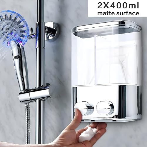 - This dual soap and shampoo dispenser features a clever wall or glass surface mounting system using strong double-sided adhesive, effectively freeing up valuable counter space. By keeping your bathroom surfaces clean and clutter-free, it creates an organized, modern aesthetic that enhances both comfort and style in any shower or washing area without taking up floor room.