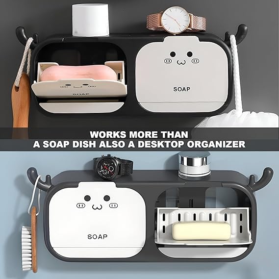 Generic - علبة صبانة، حامل صابون بغطاء قلاب مع خطاف يثبت على الحائط، علبة تخزين صابون بتصريف بدون ثقب، علبة صابون لغسيل الملابس بغطاء قلاب (قطعة واحدة)