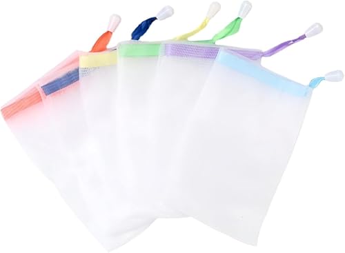 Generic - مجموعة أكياس حفظ الصابون من 5 أكياس فوم شبكية تصنع رغوة وتساعد على استخدام كل قطعة صابون، شبكة سريعة الجفاف مع حبل تعليق بتصميم تقشير للوجه والجسم وروتين الاستحمام