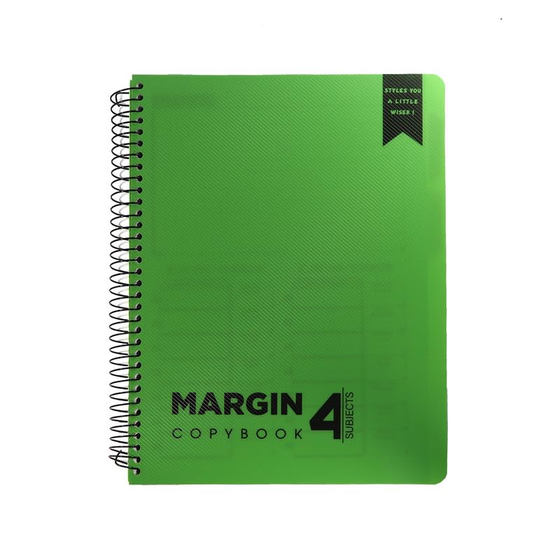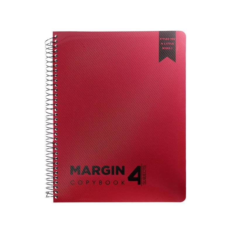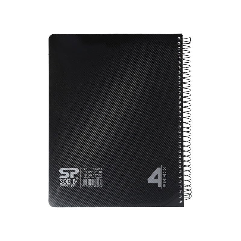 Sobhy - دفتر ملاحظات بسلك حلزوني من صبحي- 160 ورقة مقاس A4 - هامش - 4 فواصل - مثالي للاستخدام اليومي في المدرسة أو الجامعة أو العمل - أنيق