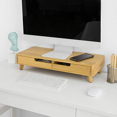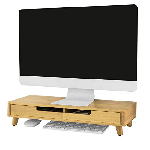 SoBuy - حامل شاشة من الخيزران مكون من 2 درج من سو باي®، حامل شاشة كمبيوتر ومنظم مكتبي، موديل BBF06-N
